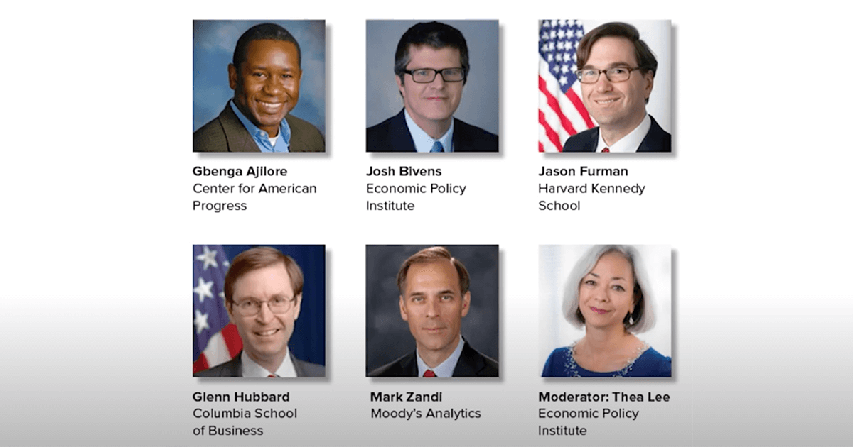 The consensus was striking. Zandi is a former adviser to Republican Sen. John McCain’s presidential campaign; Hubbard served as chair of the Council of Economic Advisors during the George W. Bush administration; Furman served as chair of the Council of Economic Advisors under President Barack Obama; and Ajilore is senior economist at the Center for American Progress, a progressive think tank.